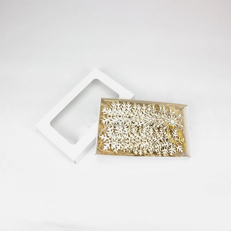 Set mit Schneeflocken - Schachtel mit Weihnachtsschmuck
