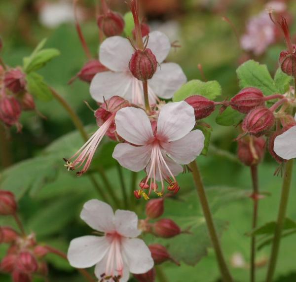 Der Erdnuss-Hahnenfuß Spessart blüht mit einfachen, fünfblättrigen, weißen Blüten von Mai bis Juli. Die Blüten sind kleiner und heben sich schön von den grünen, handförmig gelappten Blättern ab, die sich im Herbst verfärben. Die ganze Staude wird bis zu 40 cm hoch.