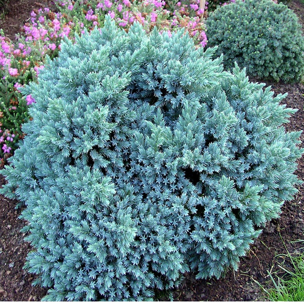 Eine sehr hübsche Pflanze dank ihrer silber-blauen Farbe. Sie wächst langsam, ist eine Zwergpflanze mit einem kugelförmigen bis sternförmigen Wuchs. Sie verträgt sowohl Sonne als auch Halbschatten und lehmig-sandigen Boden. Aufgrund ihrer Größe ist sie sowohl für Steingärten als auch für Töpfe geeignet. Sie braucht keinen Rückschnitt.