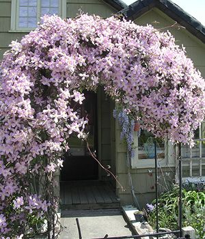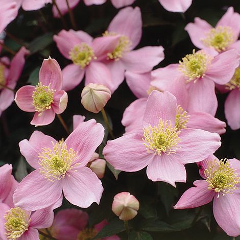 Clematis Elizabeth ist eine kletternde und üppig blühende Clematis. Die großen Blüten mit einem Durchmesser von 15 cm haben blassrosa bis weiße Blütenblätter. Die Mitte der Blüte ist gelb. Die Form der Blüten ist variabel. Die Blüten dieser schönen Sorte erscheinen im späten Frühjahr/Sommer. Sie kann im Frühherbst wieder blühen, nachdem die abgestorbenen Blüten entfernt wurden. Sie kann in Töpfen gepflanzt werden. Er braucht eine stehende Stütze; bei ausreichender Sonneneinstrahlung blüht der ganze Strauch.