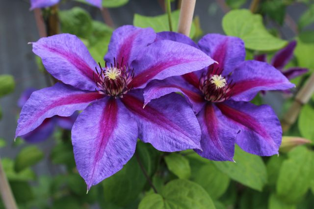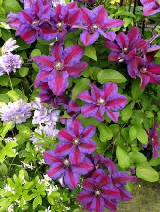 Mittelgroße Blüten in einer ungewöhnlichen Farbkombination aus Violett und Dunkelrosa verzaubern jeden Clematis-Liebhaber.