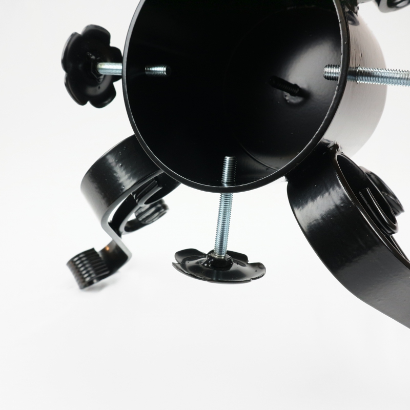 Das Loch für die Stammbefestigung hat einen Innendurchmesser von 12,5 cm und eine Höhe von 12 cm. Der Behälter ist unten geschlossen und in der Mitte befindet sich eine selbstschneidende Schraube zum Befestigen des Stammes. In den Behälter kann Wasser gegossen werden.