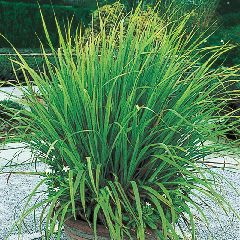 Zitronengras ist eine Pflanze aus der Familie der Poaceae - der Flechtengewächse. Es ist eine mehrjährige Pflanze, die in Sri Lanka und Südindien heimisch ist. Zitronengras Tasty Lemon bildet dichte Büschel mit schmalen, rauen Blättern, die bis zu 150 cm hoch werden. Die Blätter sind lang, dünn und von graugrüner Farbe. Der Name leitet sich von seinem frischen, zitronenähnlichen Duft ab, aber sein Geschmack hat nicht die Säure der Zitrone.