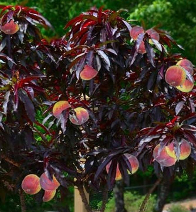 Schnellwüchsige Minibaumsorte mit dekorativen roten Blättern, geeignet für den Balkon. Die Sorte ist krankheitsresistent und verträgt die Anpflanzung in höheren Lagen. Sie eignen sich für den Anbau im Freiland und in Töpfen. Früchte reifen Mitte August. Der Pfirsich hat eine gelbe Grundfarbe, die größtenteils von Rot überlagert sein kann.